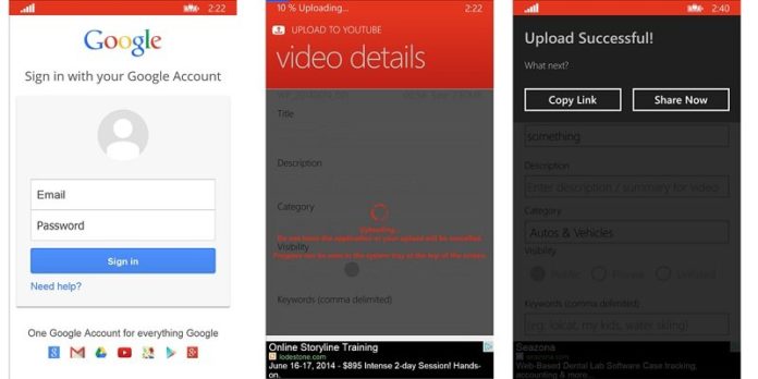 Thanks to the tiff between Google and Microsoft, Windows Phone users have been unable to enjoy a YouTube experience as good as their counterparts on Android and iOS. However, the huge collection of third party apps have tried their best to fill the void. While there are plenty of apps to allows users to play YouTube videos on Windows Phone, there wasn’t any until now that allowed them to upload videos to the website. Luckily for them, the newly launched and aptly named app Upload to YouTube just allows users to do that.